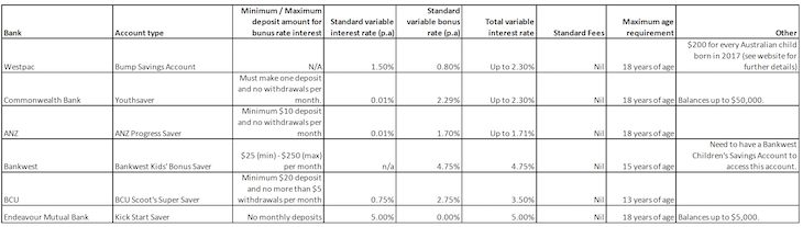 Do you need to open a bank account for your little one but not sure where to start? We’ve got you sorted. We’ve scanned all the websites of the big banks and not-so-big banks to bring you what we believe to be the best bank accounts on the market for little ones. (Current at time of publications Feb 2018)