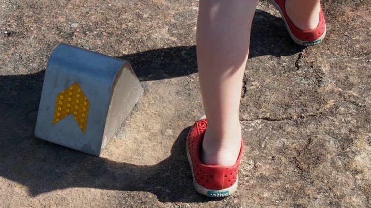 The track is a wonderful addition for the area but unfortunately for we parents, it's not pram (or disabled friendly). I thought this was a real shame, though I do acknowledge that it is a National Park and should be respected as such. The walkway is made from a gritty, hard steel/plastic substance that was easy to walk on. My four year old came on the walk with me and sadly tripped, resulting in some very nasty cuts to his little knees. Perhaps something to consider for parents – wear longer pants and as there is a lot of glass beside the pathway from midnight shenanigans, always ensure your kids are wearing the right shoes. As the sign says, supervise your children at all times. There are a couple of seats to rest on along the path and hand rails on the pathway.