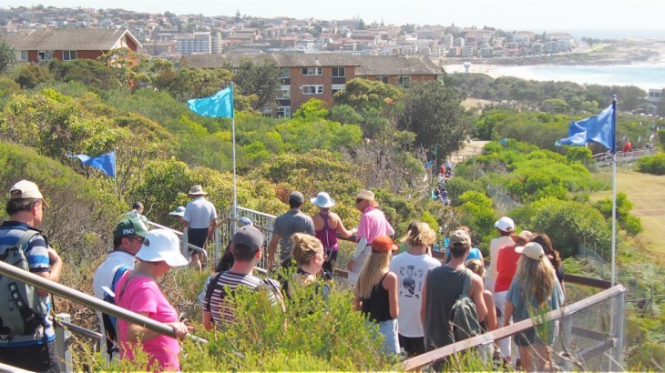 The official proceedings took place in Pioneer Park, Malabar. It commenced with a wonderful Welcome to Country by local indigenous elder, of the Cadigal people, Aunty Lola. Aunty Lola explained that this land was used as camping grounds for the Bidjigal and gadigal clans. The track today still exhibits evidence of their presents here with rock paintings and axe carvings.