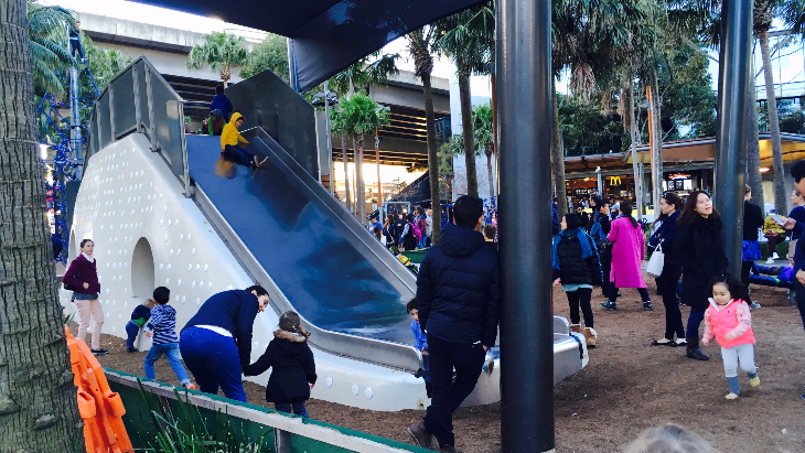 The Darling Harbour Children's Playground at Tumbalong Park is one of our favourites. It boasts fantastic climbing nets, a flying fox, slides, a mega sand pit, swings, roundabout and more. The water play during the summer is a highlight but during the chillier months, there’s plenty of FREE fun to be had.