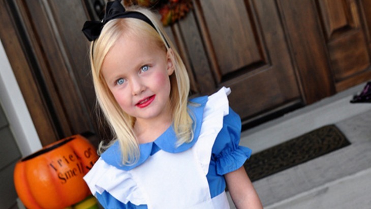 A blue dress, white apron, white leggings, black shoes and a black ‘Alice’ headband. Carry a small bottle with a ‘drink me’ label for extra oomph!