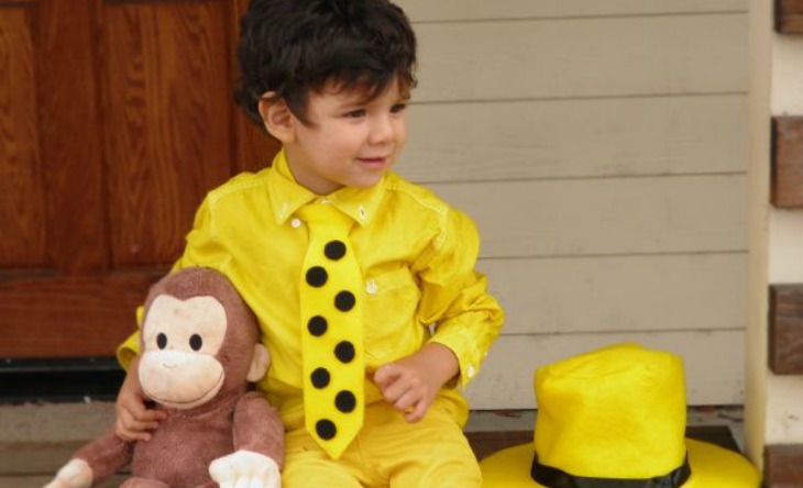 Grab a yellow shirt and jeans with brown boots. If you don’t have a yellow tie lying around, make one with cardboard with black polka dots. Bring along your toy monkey and it’s all done!