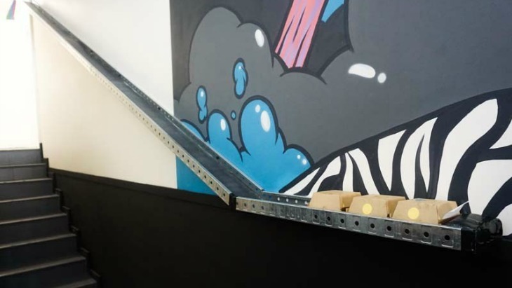 If not for the burgers themselves, at least make a trip to BL to witness the Burger Slide in all its glory! Pictured below, you can see the slide where orders of indulgent takeaway burgers like the award winning “Blame Canada” (think double American style cheese, a stack of Wagyu Beef and maple soaked bacon) come flying down a slide in a brown box covered in stickers.