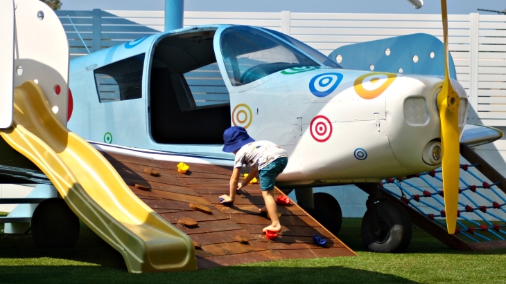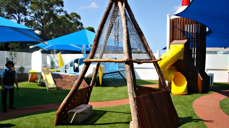 Kids Club are no strangers to fun facilities, they truly believe environment is the third teacher in the cognitive and physical development of a child. So what exactly will your children be experiencing at the new Rosebery centre in Sydney's inner west? Well, their rooftop play area will make jaws hit the floor. The twirling yellow slide spurting out of a rocket ship, the wooden teepee shade, the sand pit with diggers, the pirate ship .... and of course, the pièce de résistance: the real aeroplane with slide!