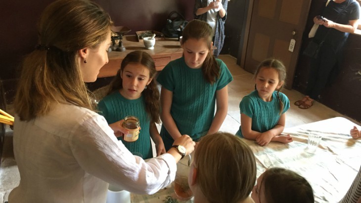 We were led out through the house and down to pick some lavender in the main garden, then we head to the ‘Kitchen Garden’. This garden was beautiful- full of fresh vegetables and edible flowers. I overheard one of the parents perfectly describe it: like we were in a Beatrix Potter book following Peter Rabbit through Mr McGreggor's Garden. We also needed to collect honey but obviously, couldn’t do that ourselves but my girls were still fascinated by the 4 giant bee hives containing 30,000 bees in each. We were able to taste some of the honey which had been collected earlier and it certainly was yummy, needless to say after that my girls were constantly reminding me to buy some in the gift shop before going home, which of course I did.