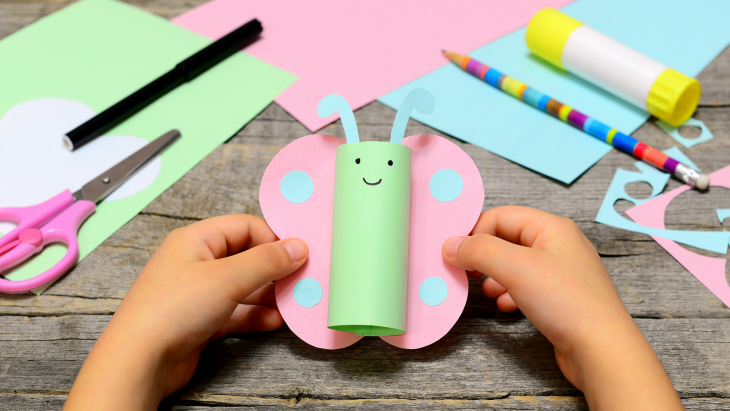 Decorate your child's room with these little beauties! They're super simple, and can be as colourful and magnificent as you dream. You'll need a small toilet paper roll, some sheets of paper in different colours, scissors, glue or clear tape, a marker pen, and any additional bits you might want to decorate with (glitter, pipe cleaners, paint).