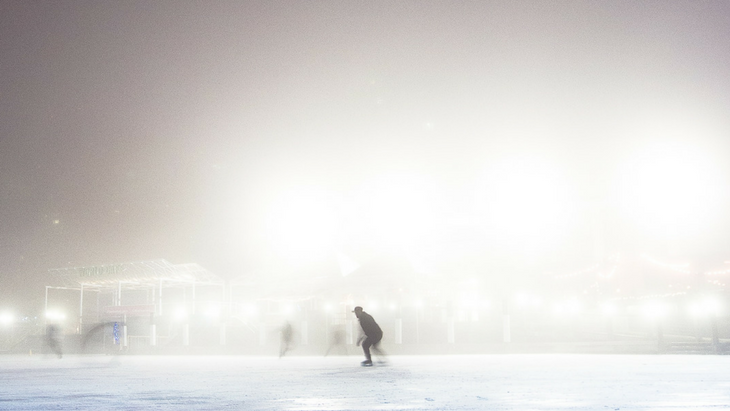 The fabulous ice rink is part of the Map 57 festivities, which includes food stalls, bars, carnival rides, and the ever-entertaining Spiegeltent.